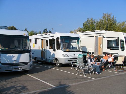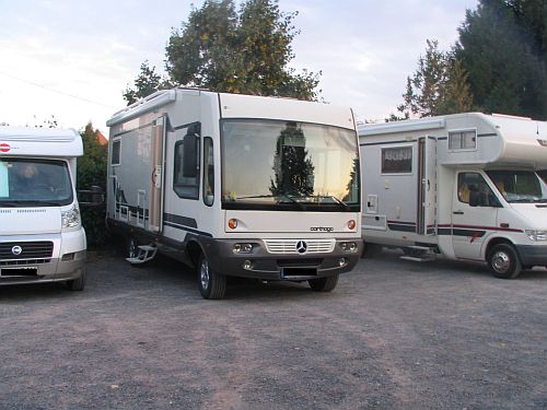 Das wir zusammen stehen konnten parkte ich auch noch um und wir standen alle in einer Reihe. Das erste Bier wurde geköpft nachdem klar war das wir heute nicht mehr weiter fahren. Die Zeit bis Markus und Rita kamen verging recht schnell und kurzweilig mit allerlei Gesprächen.