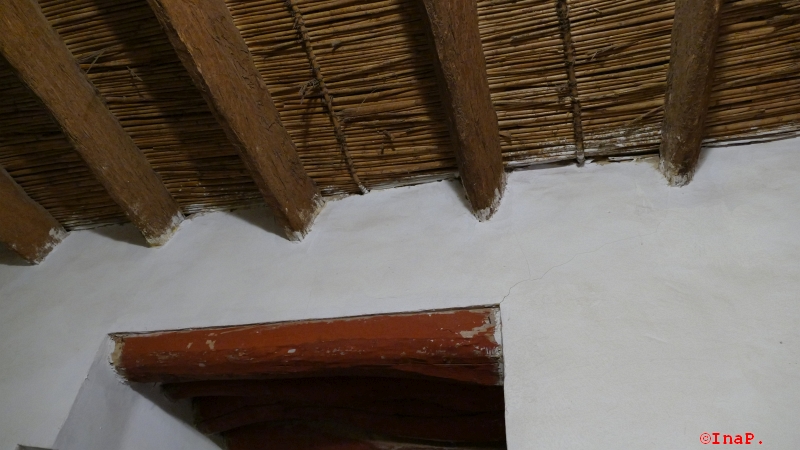 Hier wird die Wand verputzt, auch mit den alten Baustoffen, wieder Lehm, Kalk und Stroh
