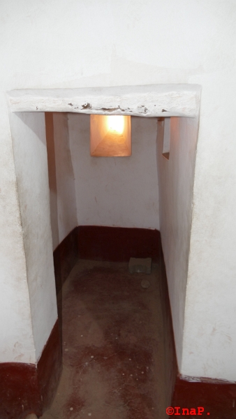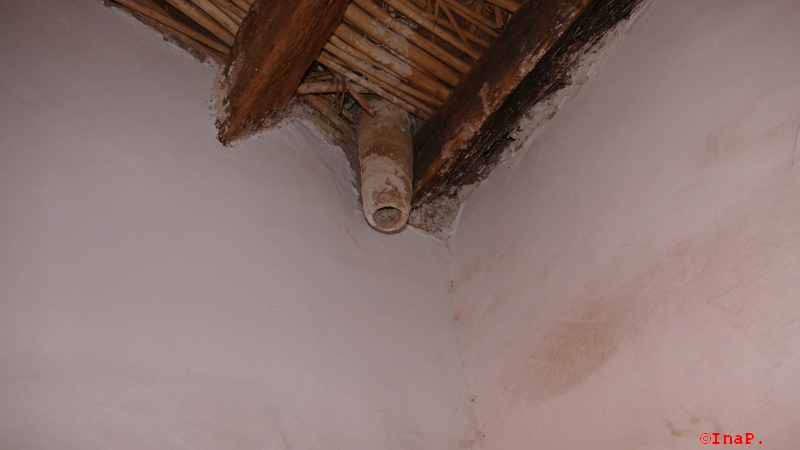 Zugluft, das können sie hier auch fantastisch. Da hat der Führer auch einen kleinen Spaß gemacht, das sei nicht wie bei unseren Burgen ein Klo, nein, das ist zur entlüftung. Eine Klimaanlage durch den Spalt unterm fenster und die Löcher kann die Luft gut zirkulieren und es hätte wohl immer so um die 20-25° je nachdem wie auch die Fensterläden geschlossen würden.