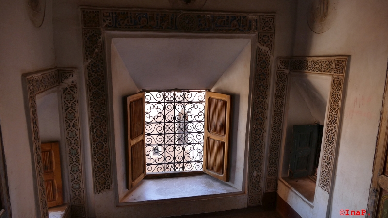 Die war schon von außen sehr schön. Leider habe ich den Führer Said nicht so gut verstanden. Das sind dann jetzt Gästehäuser für die alten Karawanen. Es gab früher drei wichtige durchs Land. Die Gold, die Silber und die Salz Straße und alle mussten ja irgendwo unterkommen. Die lebten aber meistens und am liebsten ebenerdig. Diese hier war jetzt aber trotzdem 4 Stöckig.