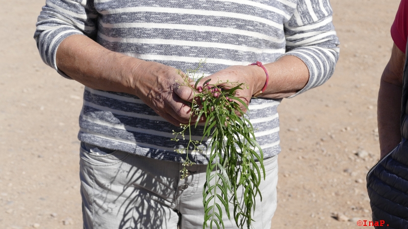 Kerstin zeigt uns die Zeige, Früchte und Blüten des Pfefferbaums, die Pfefferkörner kann man trocknen und die Blätter auch verwenden. ZB Im Salat und im Gemüse, leicht scharf