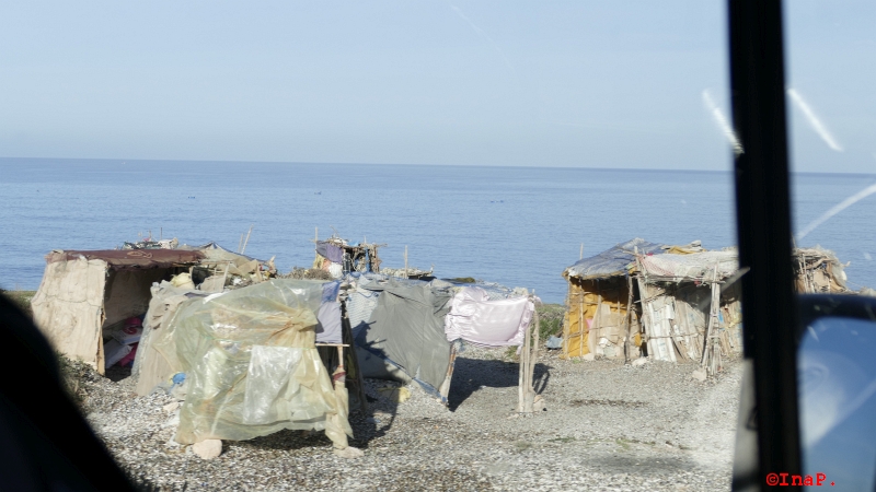 Der hier war schon voll und wurde noch voller weil der davor kaputt ging und wenn er so richtig ganz voll ist, dann nimmt er keine mehr mit und wir sahen viele die selbst uns zu halten baten. Normal Zeigefinger nach unten oder Tramper Zeichen Daumen hoch. Die taten mir richtig leid. Stundenlang in der Sonne die wieder richtig gut warm war