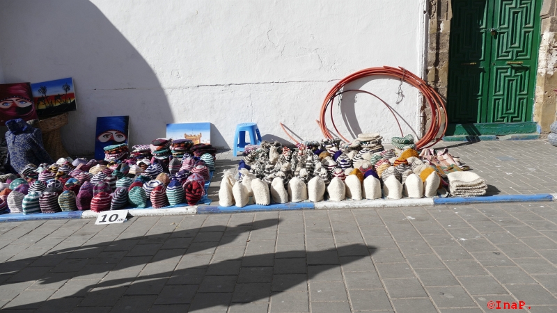 Selber gemachte Mützen, sah aus wie das sie auf Tunesische Art gehäkelt wurden. 10 DH sind 80 Cent