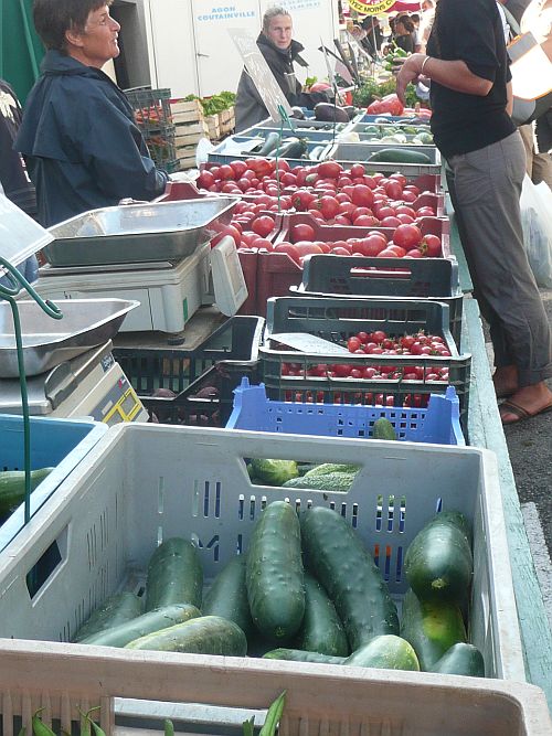 gibt es noch, hat mir gut gefallen, aber ich kann nicht nach 8 Km schon wieder einen längeren Stop einlegen. Bin nur raus, paar Bildchen machen und bei einer Bäuerin frisches Gemüse gekauft. Zucchini, grüne und gelbe, Tomaten, Gurke und Knoblauch J nur gut das mich heute keiner riechen muss. 2 Zehen habe ich mir gleich auf mein Baguette geknallt J