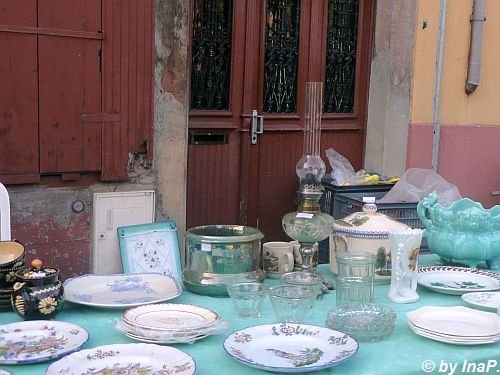 und danach stürzten wir uns ins Getümmel. Es gab einen wunderschönen Flohmarkt der den Namen auch verdiente, das halbe Dorf war mit Ständen von Privatleuten übersäht. Am Dorfende gab es noch einen Wochenmarkt mit Obst und Gemüse.