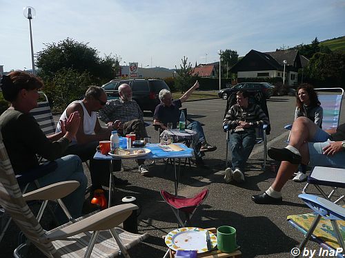 Danach sahsen wir noch mit Flammkuchen und Wein beim Tischtennisverein und noch eine Weile hinter den Womo´s.