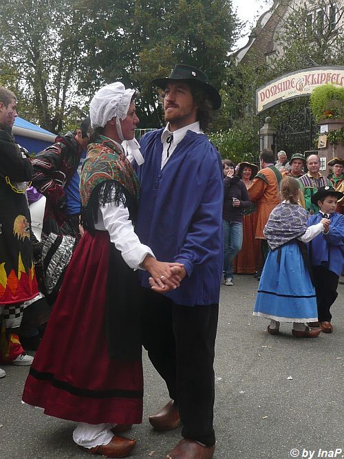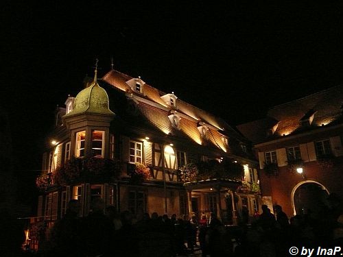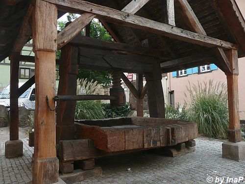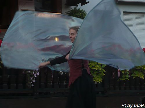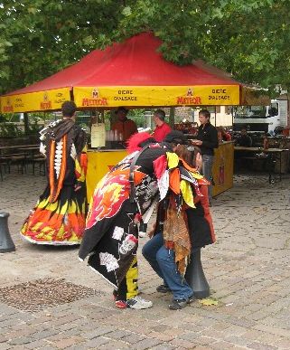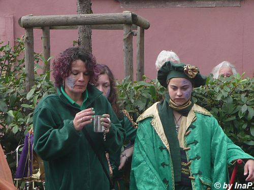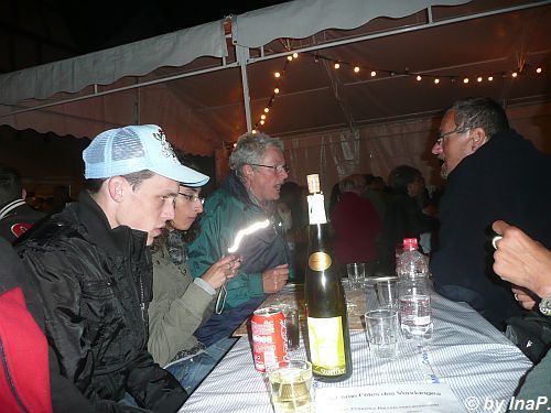 Im Hintergrund ist einer der "Weinbrunnen" zu sehen. In den früheren Jahren lief da der Wein Literweise raus, letztes Wochenende meistens Saft. Ich denke mal das es zu Ausschreitungen kam wenn manches Volk zu viel Wein zu viel getrunken hatte oder aber das Winzer bisher so gut verkauft haben das nichts anderes übrig blieb :)