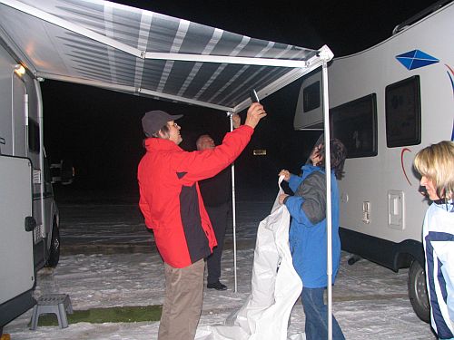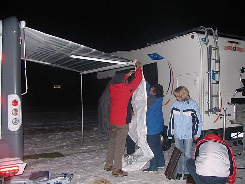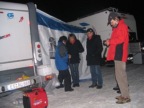 aus den Womo´s raus. Es war halb zehn in Deutschland und wir sammelten uns