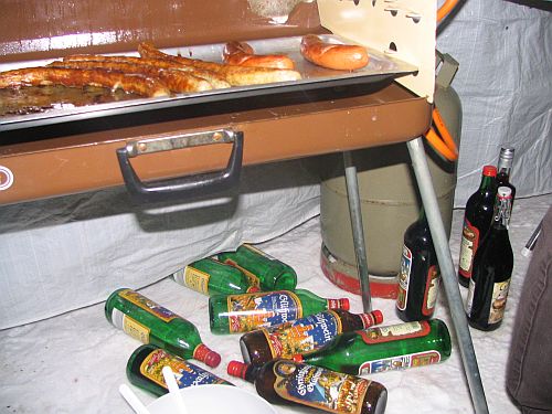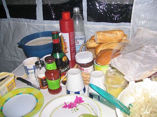 Doris verwöhnte uns mit wirklich lecker Pfannenkuchen, Würste gab's noch, Brötchen, Salate ect.