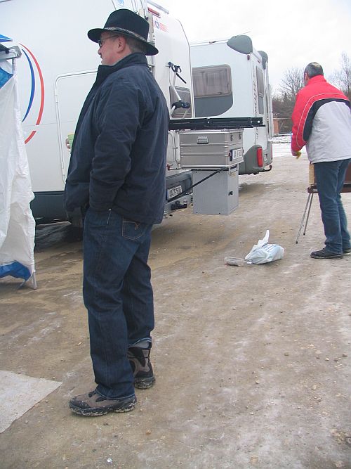 Kurz darauf kam Kollege Elliot mit Frau, Gerd und Ani, grosses Hallo und vorsichtiges beschnuppern, dann kamen noch ein paar Fremde auf den Platz, so das wir dann doch lieber "umzogen" und uns rechts von der Platzeinfahrt hinstellten, das wir auch alle beisammen stehen konnten und den anderen nicht soooo nah auf die Pelle rückten.