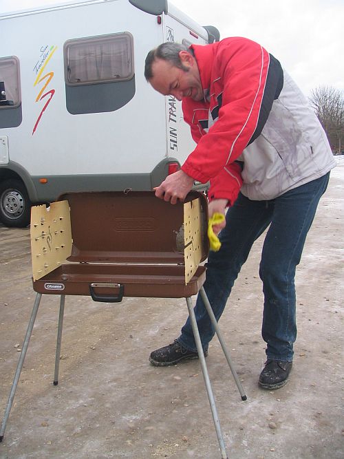 kommt an die Unterseite vom Wagen und so wird es schnell schön warm.