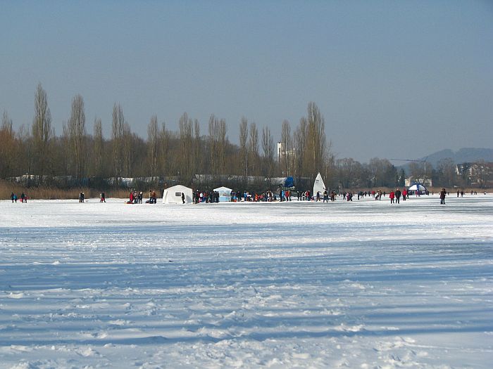 Der See war Spiegel glatt, scheinte doch Tags die Sonne drauf und taute die Oberfläche leicht an und fror dann über Nacht zum Spiegel. Alles und alle waren da und auch Glühwein gabs auch :)