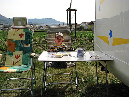 Gegen 15.00 haben sie ihn mir nach Mössingen auf den Stellplatz gebracht, so das ich es nicht so weit Heim hätte, wenn er den so gar nicht gut getan hätte. So frisch aus dem Schlaf raus hat er erst mal schlimm weinen müssen, erst recht als seine Mama dann ging.