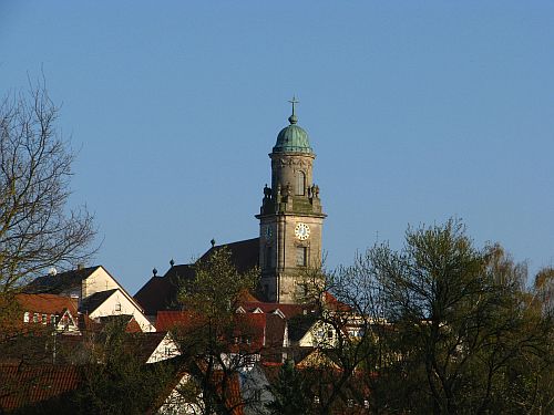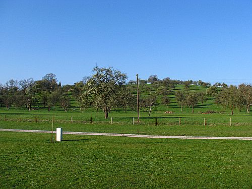 Die Aussicht lohnt, nach vorne raus, bis zum Zaun CP, ein schöner grüner Hügel mit altem Obstbaum bestand, habe mich noch ein bisschen in die Sonne gesetzt und gelesen und danach meine Stöcke endlich mal wieder ausgeführt. Da komm ich leider viel zu wenig dazu L und merke das an meinem Rücken leidvoll L Sollte meinen Stolz schlucken und mit den Stöcken zum schaffen laufen, aber da muss ich durchs ganze Dorf durch, soweit bin ich noch nicht :( Dabei die Kirche von Hechingen im schein der Sonne