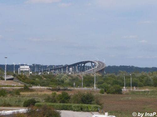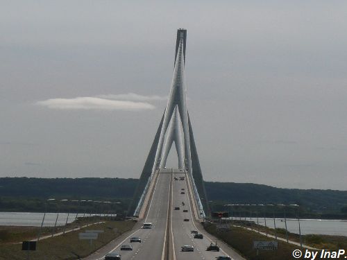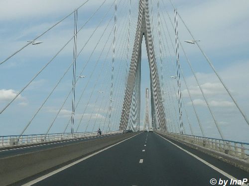 Schon weit vorher war ich leicht nervös, ist ja doch recht weit vom Boden weg. Hat sich aber gelohnt. Die gute an der Kasse hat mir Kategorie 1 berechnet und ich bin für 5€ drüber. Drüben noch mal halt gemacht und Fotografiert, dann zu früh abgebogen L und endlich in Le Havre am Hafen gewesen. War nicht mein Ding, gar nicht. Sie haben einen neuen SP angelegt am Terminal dÍrland, alles schön mit Zaun drum, wie ich es ja liebe, klein, eng und voll. Entsorgung und der Platz selber wohl kostenlos, aber 10 Min Wasser oder auch 55 Min Strom 5€.