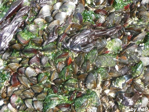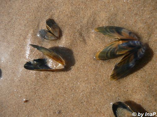 Die besonderheit an den Stränden hier, die Mies? Muscheln sind von beige bis braun-schwarz gestreift und was günstiger im Einkauf wie die schwarzen.