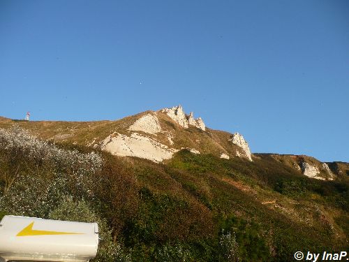 In Saint Jouin Bruneval gibt’s noch den SP am Restaurant Belveder. Ich da hoch, mich umgeschaut “Nö, iss nicht mein Platz” wenn schon oben dann auch Bildchen machen, steige aus und sehe ganz tief unten ein paar Womos stehen J