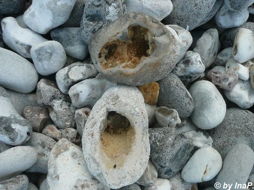 So ein Spruch der Schwaben, “Wie es ist, es ist nicht gut” als ich da so am Strand stand und den Kies sah………… verging mir ein kleines bisschen die Lust da zu laufen. Strengt an, vor allem weil der Kies ja manchmal schon sehr grob und fett ist. Aber dann doch lieber am Meer entlang und mich an dem schönen “gefundenen” erfreut als über die Felder, die habe ich Zuhause wieder zuhauf, schöne Steine gesammelt auch welche mit Loch J so wie es für die Gegend typisch ist. An dieser Stelle noch ganz liebe Grüsse an “Madame Moyocay” Schwester im Stein J hier gab´s fast noch schönere. Hab mir noch mal die Taschen voll gemacht. Den langsam geht’s nach Hause L