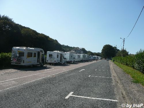 In Sainte Honorine des Pertes fuhr ich erst vorbei, zu weit vom Meer weg, mir dann Port Bessin angesehen, den neuen SP dort, nein Danke, schief, dreckig, mit grobem Schotter, Steinen, Sand und Staub und dann noch 3,50€ OK, die Stadt sah schön aus, den Weg zum SP der im Navi eingetragen war habe ich nicht gefunden, standen auch nur 2 Womos da, dann eben wieder zurück nach Honorine, hatte keinen Bock mehr zu fahren.