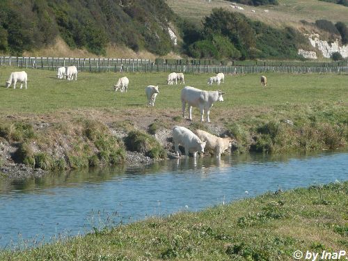 Criel sur Mer war dann das nächste Ziel und Endstation für heute und das um 12.30!. Dachte das ich kaum was schöneres finde. Kleiner SP mit CP gehabe, auf Rasen, nebenan wieder Kühe und Bach, davor nur durch eine kl Strasse und durch riesen Felsen getrennt das Meer. Wenn ich heute Nacht in meinem Alkoven lieg kann ich es wieder sehen und die ganzen grossen Schiffe am Horizont die vorüber fahren J