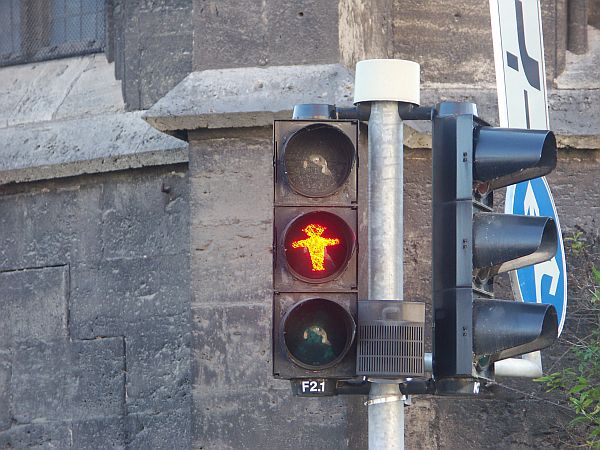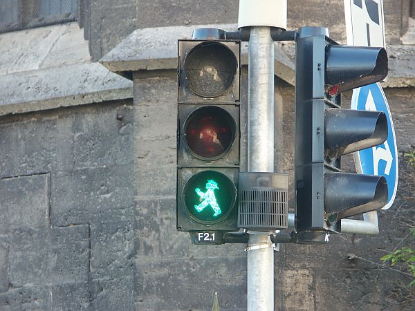 Daran das er Ampelmännchen Fotografiert :)