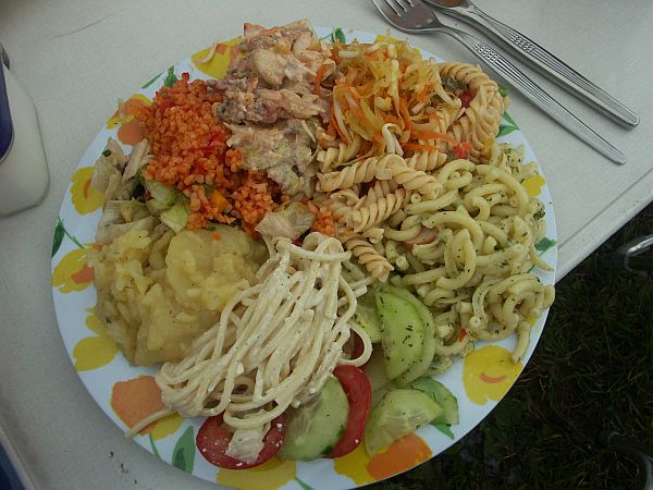 Es kam aber einige Zeit nach dem Essen, das wieder eine tolle Auswahl an super Salaten bot, nur ein kurzer Schauer runter den wie unter den diverser Markisen abwarteten u danach wurde noch lange gefeiert.