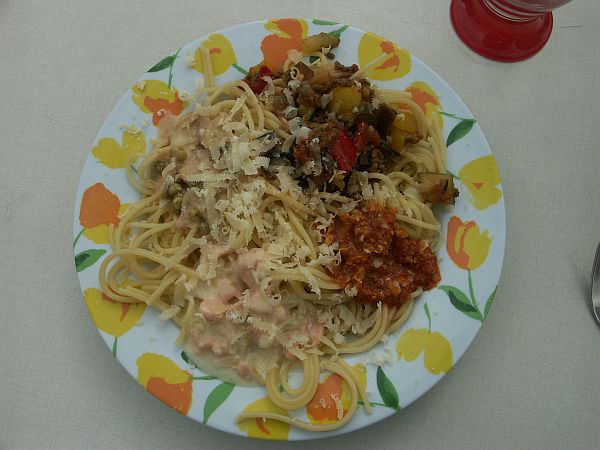 und danach gemeinsamen Nudelessen. Es war wieder eine wunderbare u wohlschmeckende Auswahl an Sossen dabei u zur Krönung gabs noch eine leckere Käseplatte.