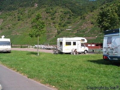 Direkt am Moselufer, teils Schotter, teils Gras, ohne V&E Für 4E die Abends kassiert werden. Sehr ruhig die B 46 auf der anderen Moselseite und die Bahn war auch nicht zu hören, mit Spiel- Fußballplatz, Tischtennisplatte. Schnell waren die Räder runter und wir gespannt auf die Umgebung. Doch leider............ hatte mein Rad einen platten, den schnell wieder aufgepumpt, aber schon 4 Kilometer weiter war's wieder platt :(