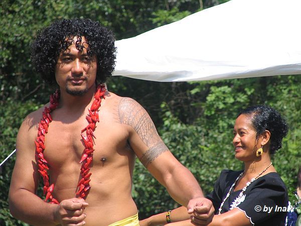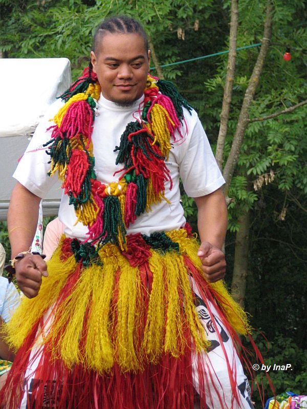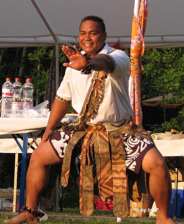 Ein Tänzer der Gruppe Faivatuumau. Die kommen aus Wallis und Futuna, einer mini Inselgruppe zwischen den Fidschi im Westen, den Samoa im Osten und den Tonga im Südosten liegen im absoluten Abseits.