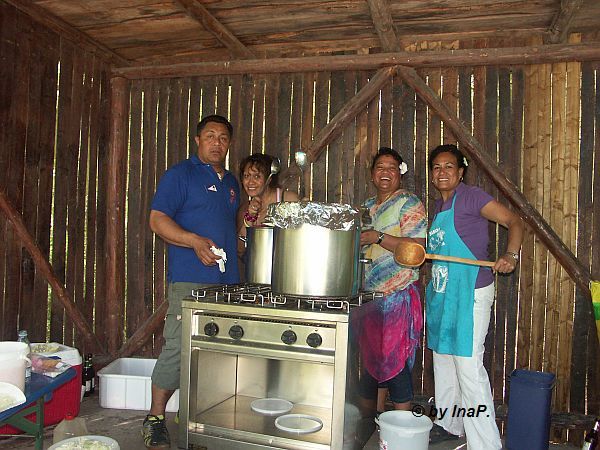 Der Koch und die Köchinen. Gibt es doch auch noch Glasnudeln, Hühnercurry, Yams, Taro und allerlei andere Leckerein.